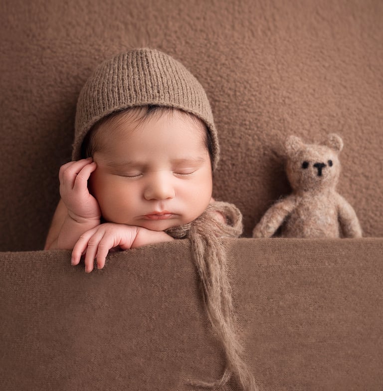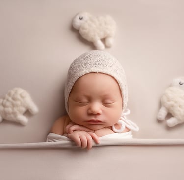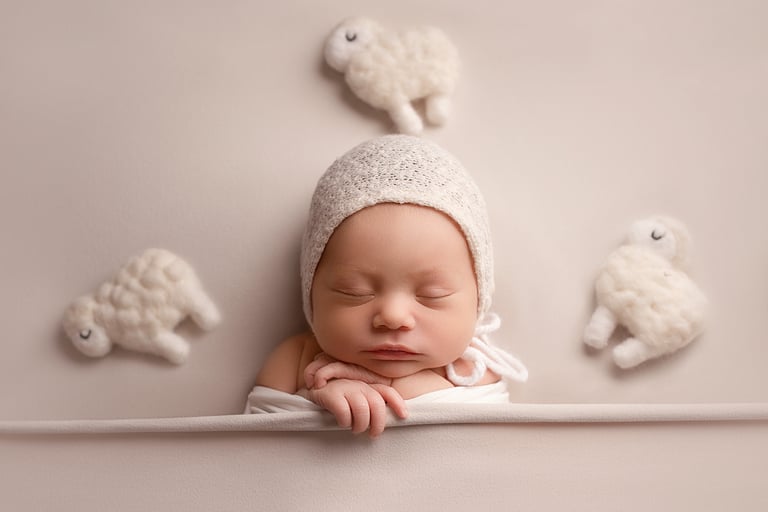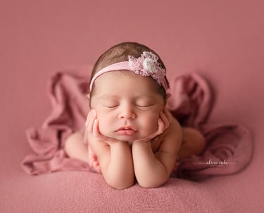 Newborn sessions last up to four hours and are for infants less than two weeks old. Newborn sessions are best at around 5 to 14 days after birth