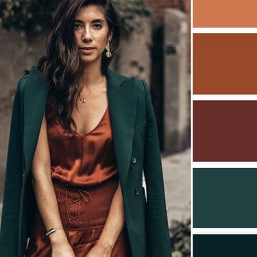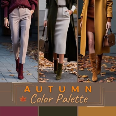 Warm Fall Colors: Mustard, terracotta, burgundy, rust, and earthy browns blend naturally with autumn foliage.